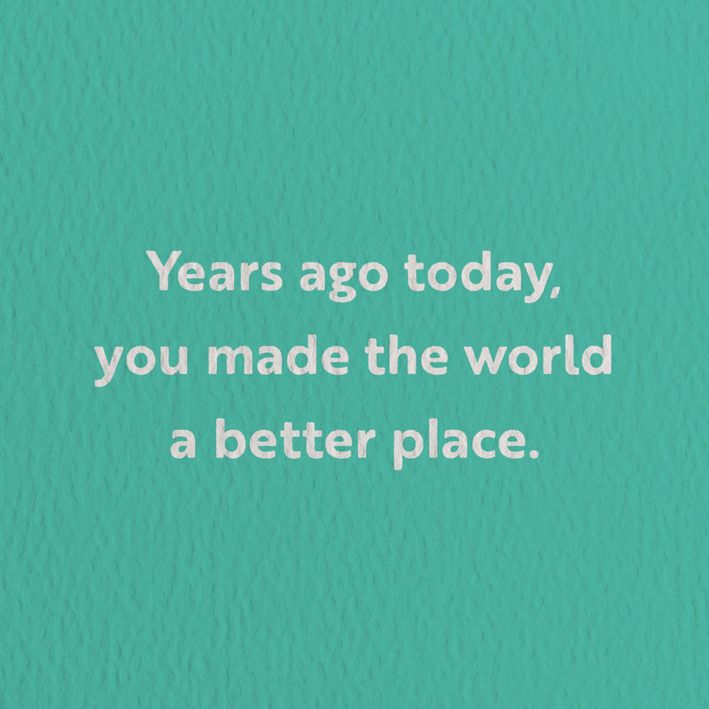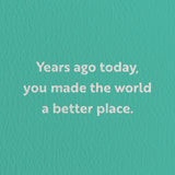birthday card with a text that says years ago today you made the world a better place