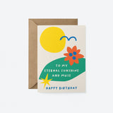 From our Birthday Cards Collection, this darling “Eternal sunshine and muse, Happy Birthday” card is perfect to celebrate your loved one’s birthday! Make them feel special with Graphic Factory’s unique birthday cards. Proudly made in Britain.