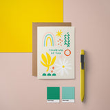 This card is A6 size and blank inside. It comes with a matched envelope which is FSC-certified. Through our collaboration with one of the best specialist printing companies in the UK, it's sustainably printed on G.F. Smith Callisto 300gsm FSC-certified paper, resulting in a lovely texture and rich colours.